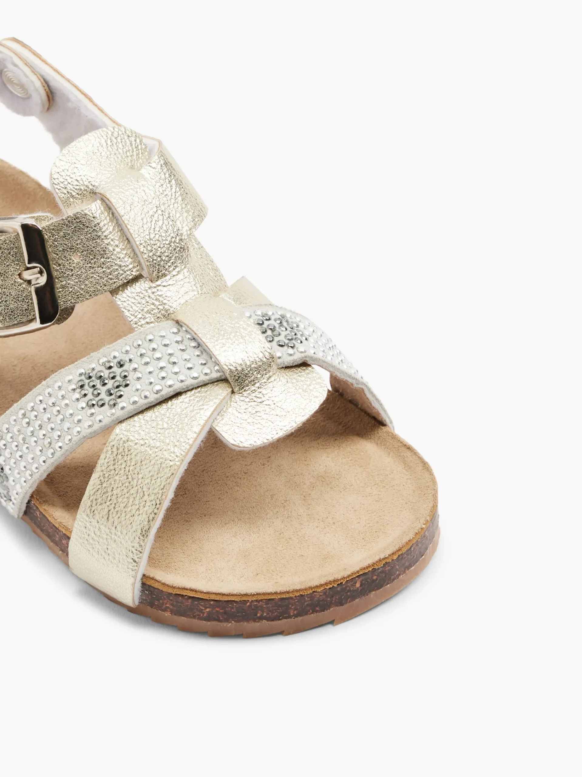 ColoreOroChiusuraFibbiaImbottituraNoColoreOroStagionePrimavera / EstateNome prodottoSandaloGenereDonnaMateriale esternoP…