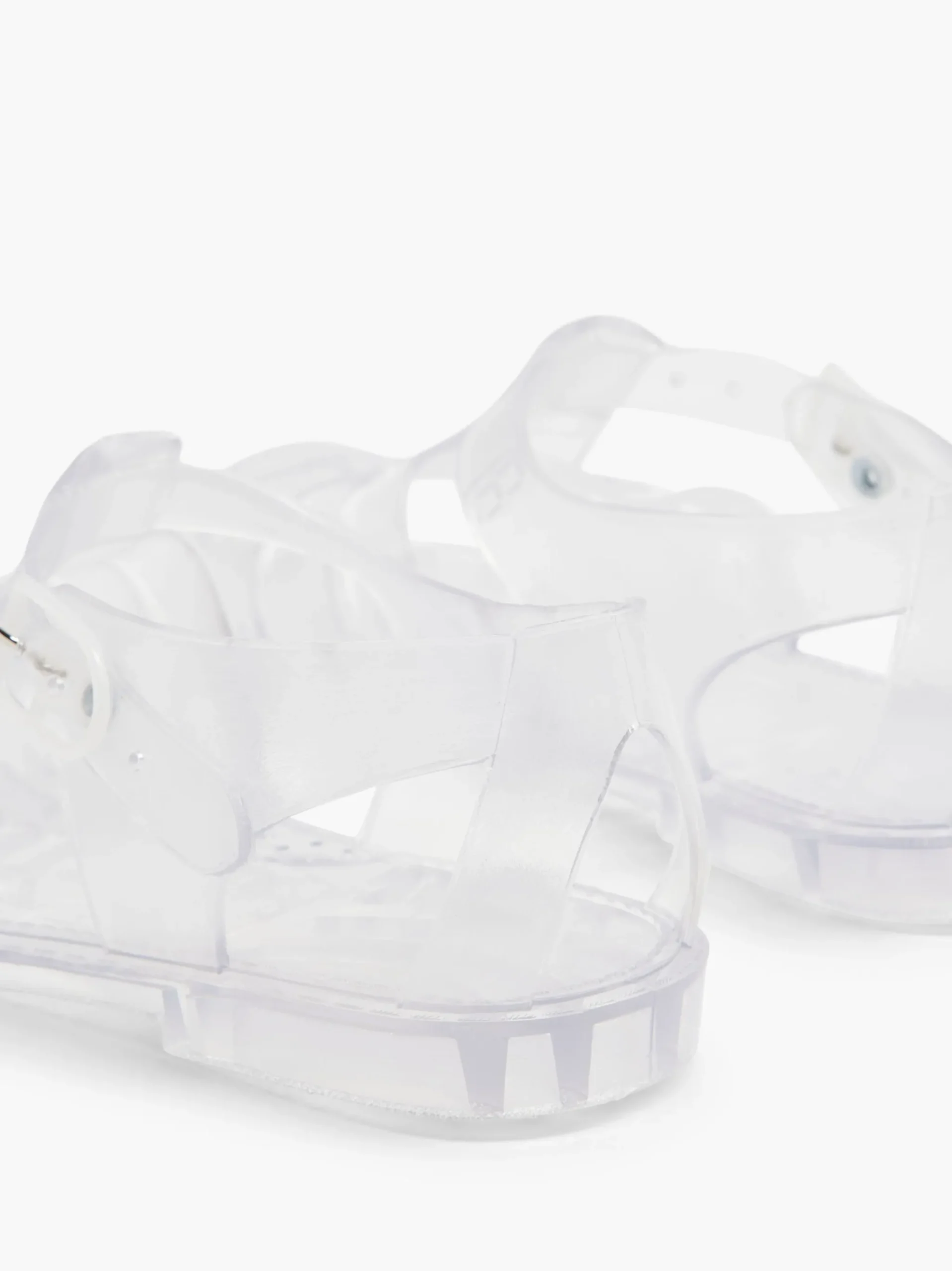 ColoreTrasparenteTipo di taccoTacco PiattoChiusuraFibbiaImbottituraNoColoreBiancoAltezza del taccoTacco PiattoStagionePr…