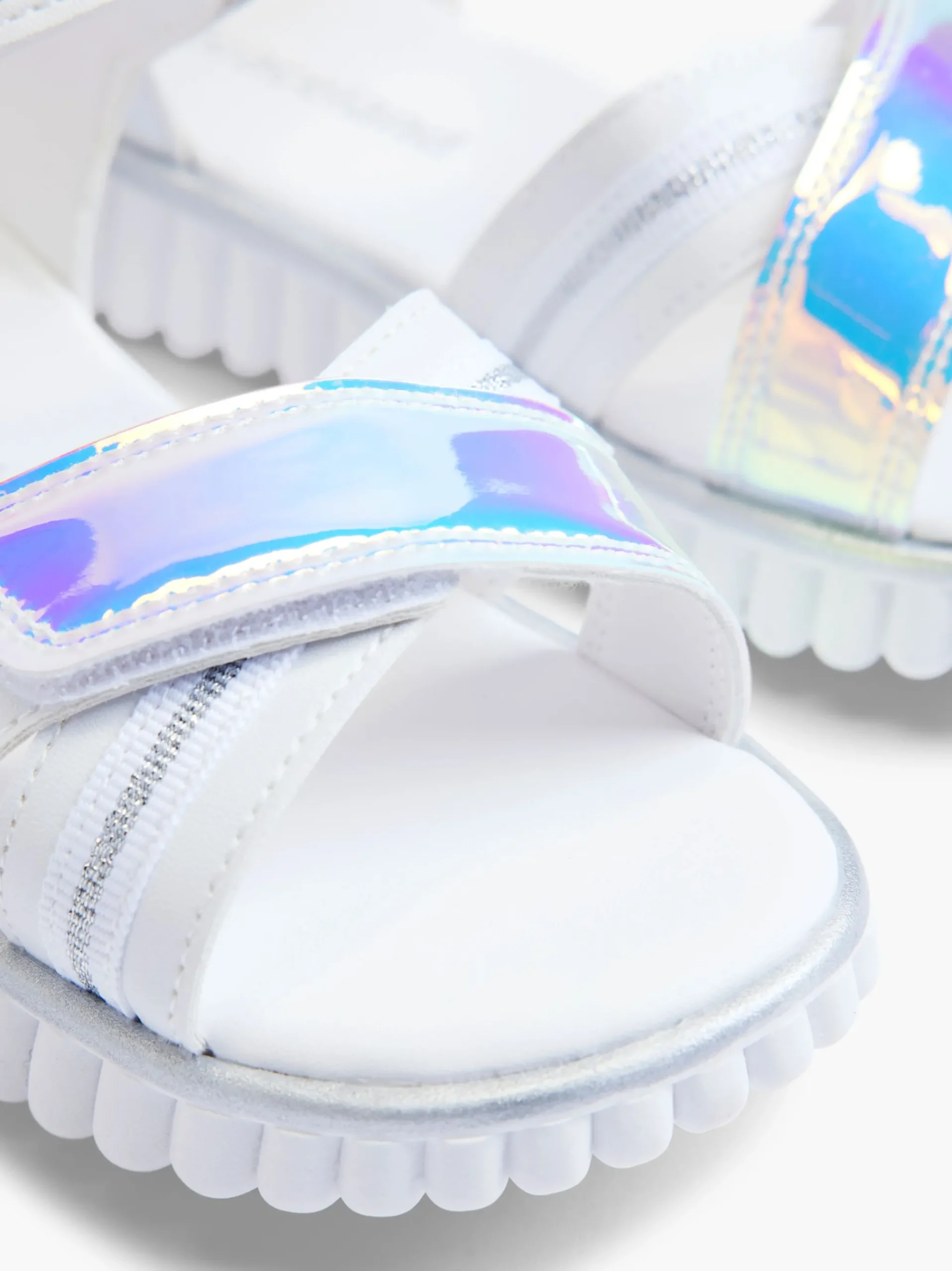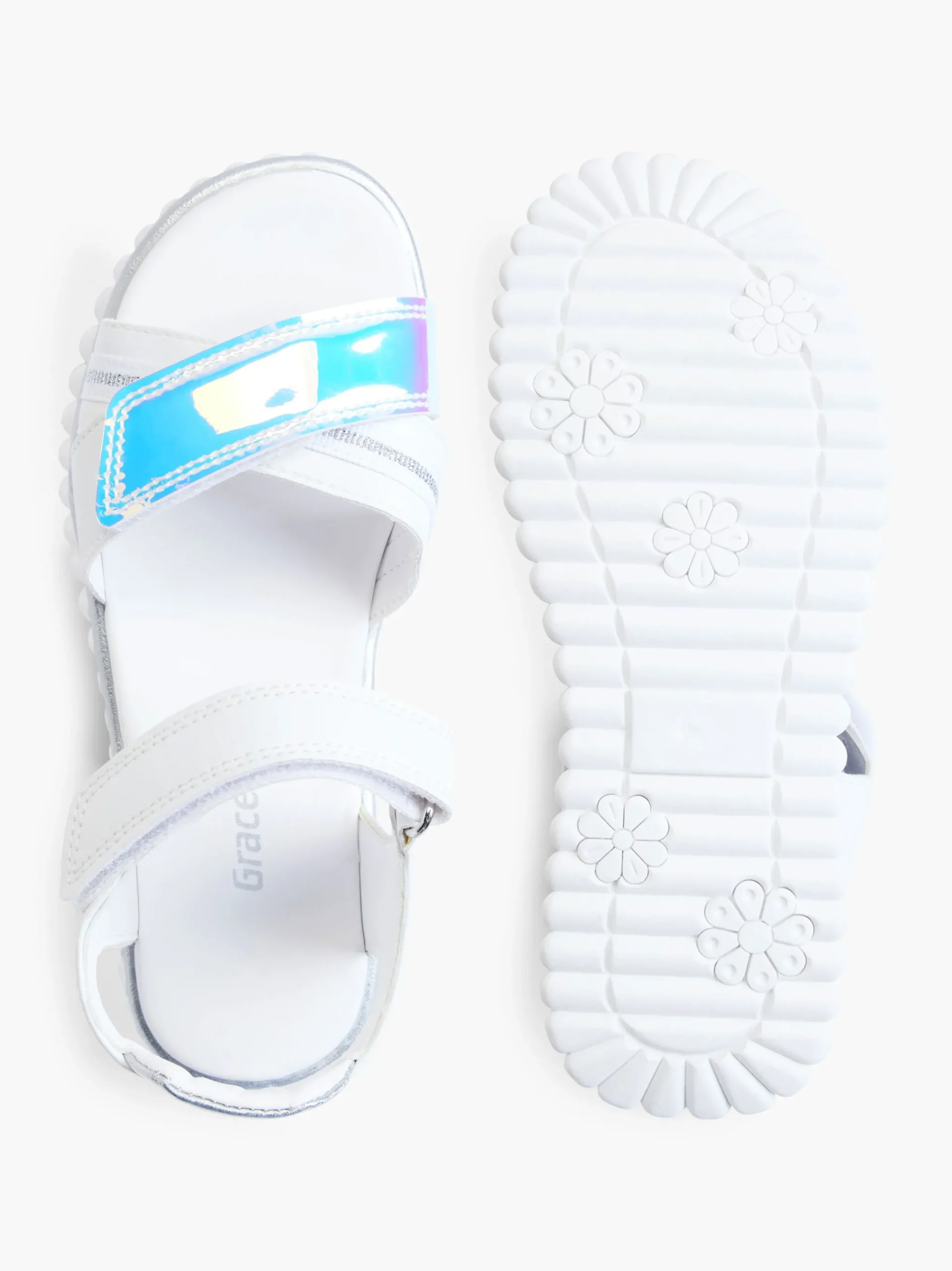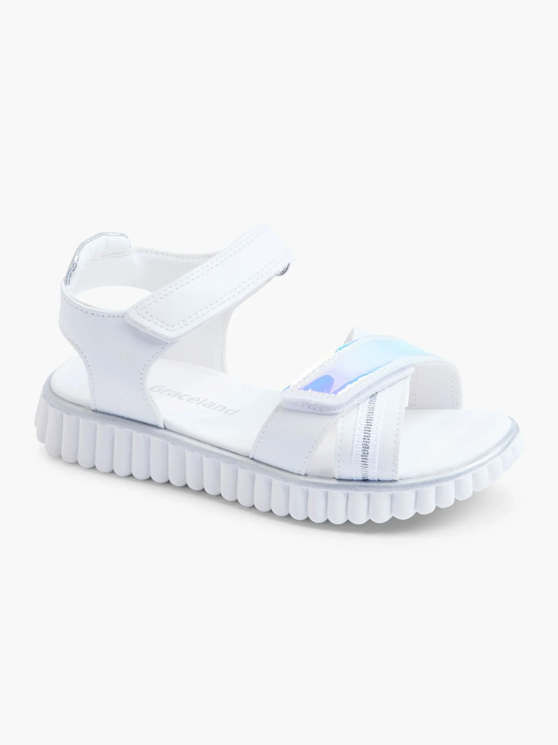 ColoreBiancoChiusuraChiusura In VelcroImbottituraNoColoreArgentoStagionePrimavera / EstateNome prodottoSandaloGenereDonn…