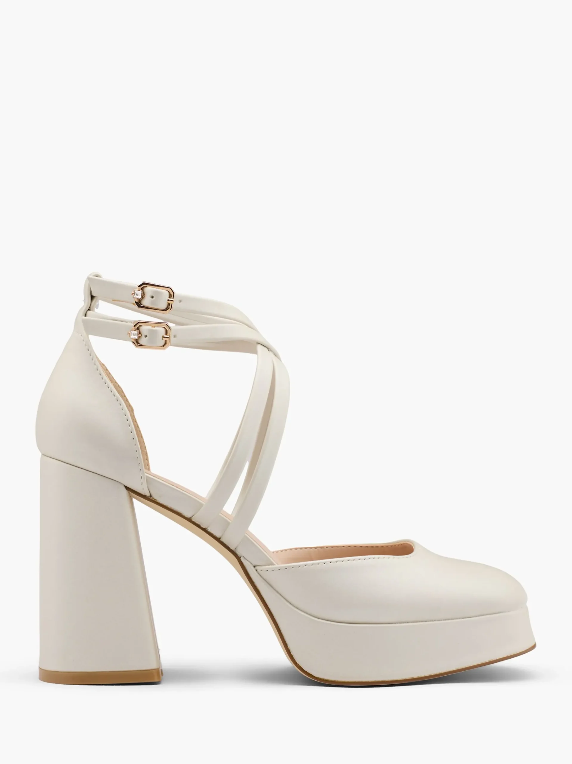 ColoreBiancoAltezza del tacco (cm)9.5 cmTipo di taccoTacco A Blocco, Tacco A ZeppaChiusuraFibbiaColoreBiancoAltezza del …