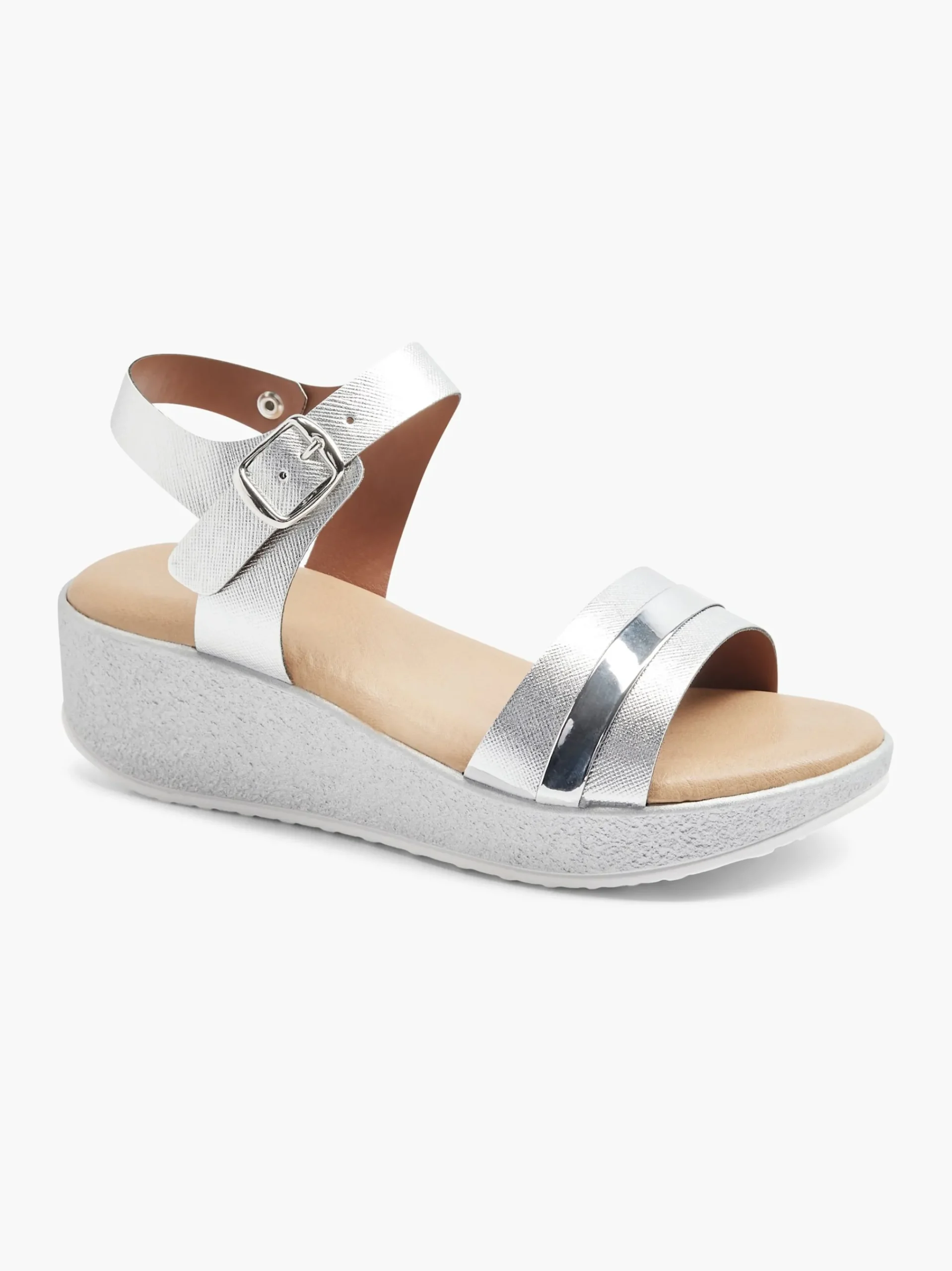 ColoreArgentoAltezza del tacco (cm)4.5 cmChiusuraFibbiaColoreArgentoStagionePrimavera / EstateNome prodottoSandaloGenere…